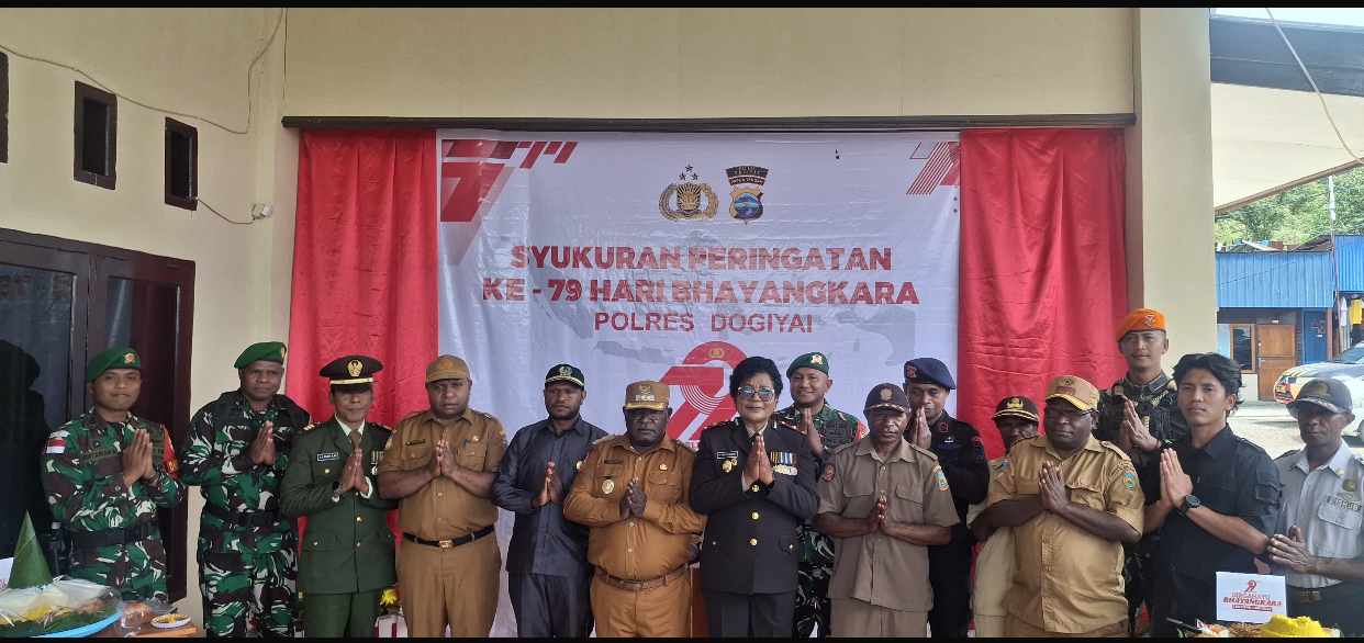 MajalahMataBorneoNews, Dogiyai, Papua Tengah  Peringatan Hari Ulang Tahun (HUT) Bhayangkara ke-79 berlangsung khidmat di Lapangan Apel Polres Dogiyai, Papua Tengah, pada Selasa 1 Juli 2025.