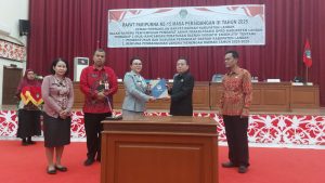 Bupati Karolin yang hadir dalam paripurna memberikan apresiasi kepada para legislator kabupaten Landak atas pengesahan dua Perda.