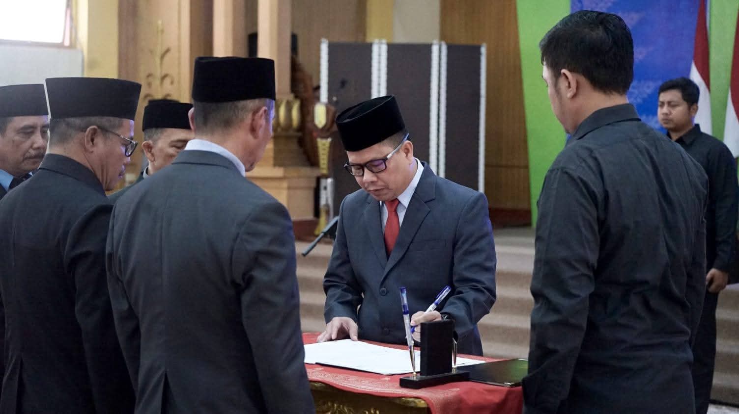 “Seluruh pimpinan daerah, baik Bupati, Wakil Bupati, maupun Sekda, mengucapkan selamat kepada bapak dan ibu yang hari ini dilantik dan dikukuhkan,” ujarnya.