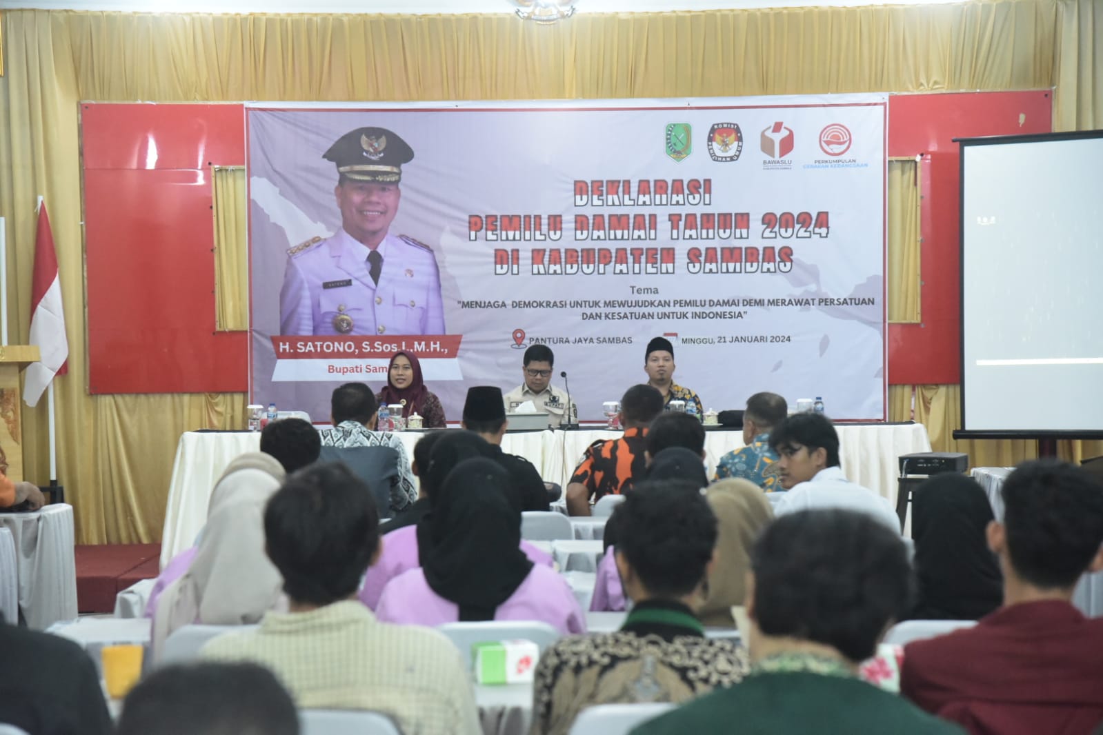 Bupati Sambas, Satono menghadiri Deklarasi Pemilu Damai Tahun 2024 di Kabupaten Sambas. Minggu, (21/1/2024).