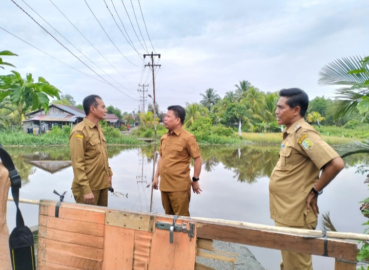 Bupati Sambas, Satono, melakukan peninjauan ke Jembatan Penghubung antara Dusun Kenanga 2 dan Dusun Melati di Desa Tebas Sungai Kecamatan Tebas yang ambruk dan putus akibat dihantam sampah hanyut dan juga dikarenakan akibat arus deras air.