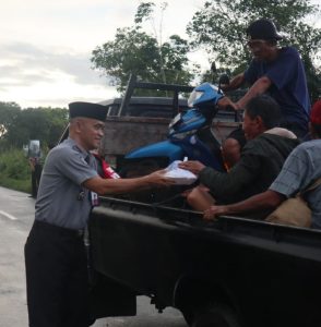 Kapolsek Bersama Ketua DPC POM Semparuk Berbagi Takjil Kepada Masyarakat