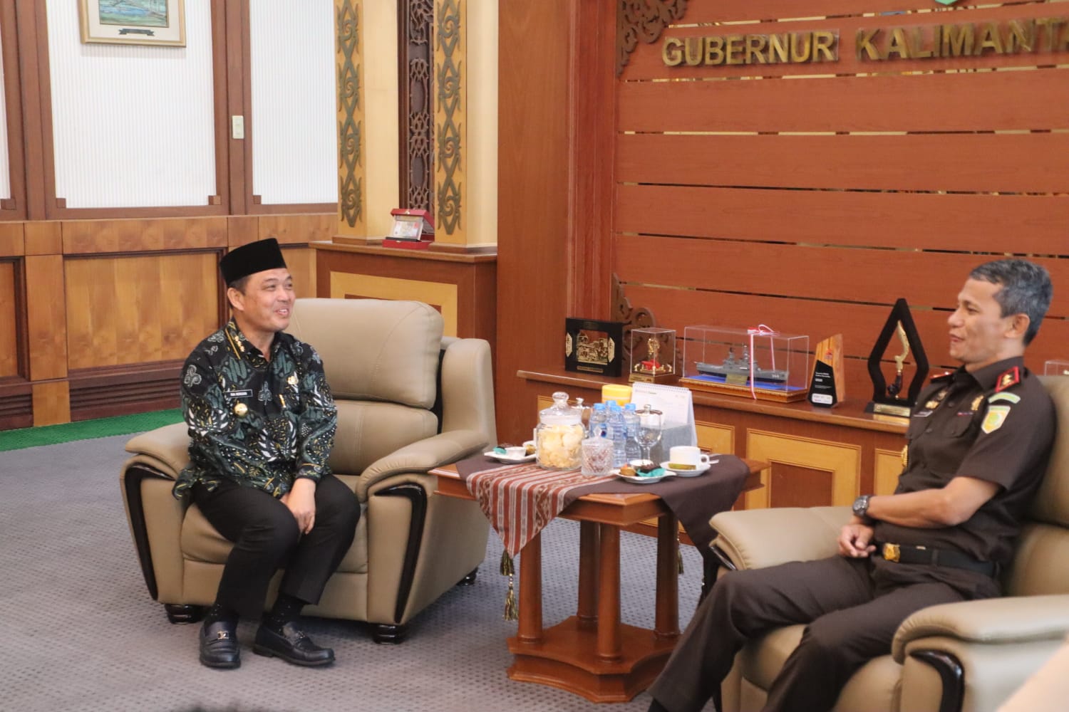 Gubernur Kalimantan Barat, Drs. H. Ria Norsan, M.M., M.H., didampingi Staf Ahli Gubernur Bidang Hukum, Dra. Natalia Karyawati, M.E., menerima kunjungan silaturahmi Kepala Kejaksaan Tinggi Kalimantan Barat yang baru, Dr. Emilwan Ridwan, S.H., M.H., di Kantor Gubernur Kalbar, Kamis (6/11/2025).