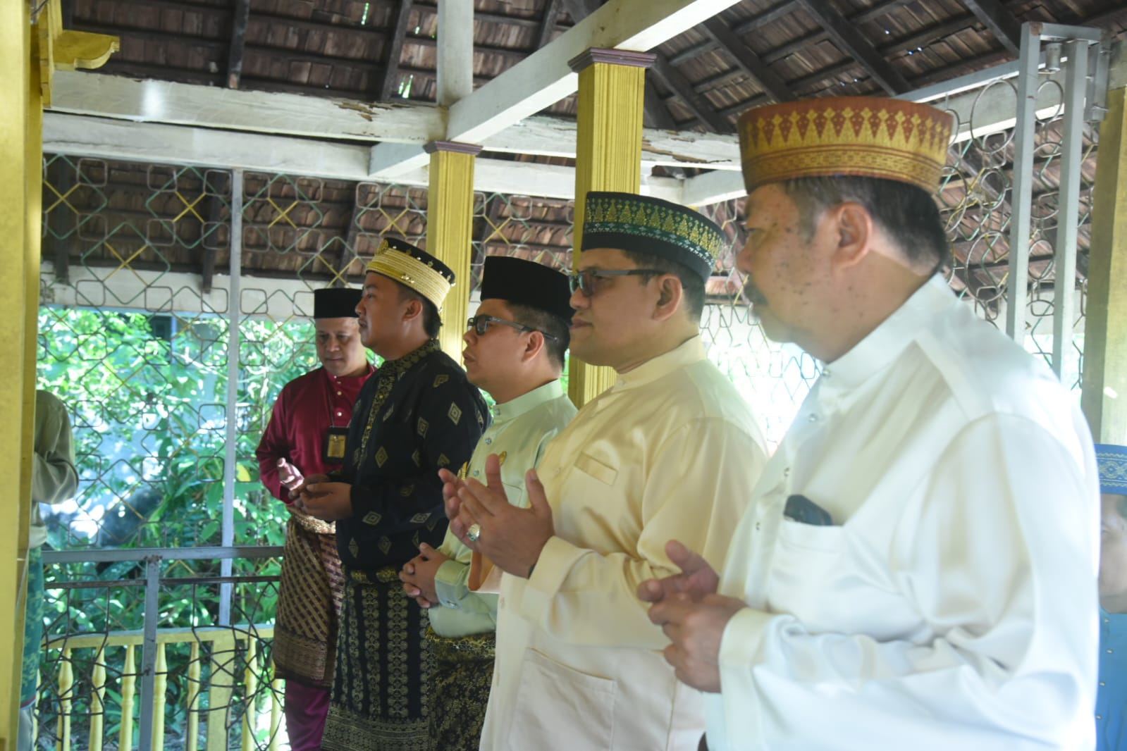Bupati Sambas H. Satono, S. Sos. I. MH., didampingi l Wakil Bupati Sambas H. Heroaldi Djuhardi Alwi, ST., MT., Sekretaris Daerah Kabupaten Sambas, Ir. H. Fery Madagaskar, M.Si berziarah ke makam Sultan Sambas sebagai langkah napak tilas peradaban sejarah kerajaan Sambas di momen Hari Ulang Tahun (HUT) Ke-394. Rabu 9 Juli 2025.