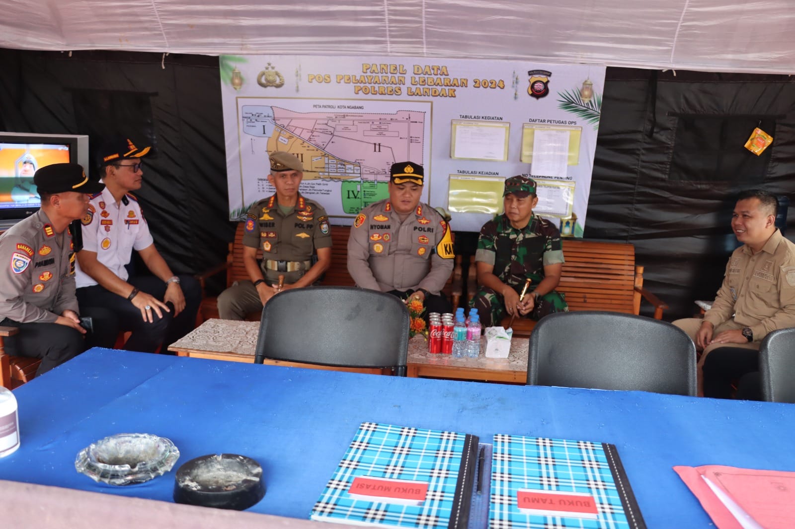 Majalahmataborneonews.com, Landak -Pastikan kesiapan pos pengamanan dan pelayanan lebaran pada pelaksanaan operasi Ketupat Kapuas 2024, Kapolres Landak Akbp I Nyoman Budi Artawan, S.H.,S.I.K.,M.M yang di dampingi oleh Waka Polres Landak Kompol Sukma Pranata, S.I.K M, PJU Polres Landak, Forkopimda dan Ibu Ketua Bhayangkari Landak serta Pengurus Bhayangkari Cabang Landak melaksanakan pengecekan ke pos pengamanan dan pelayanan di wilayah hukum Polres Landak serta memberikan bingkisan lebaran kepada Personel yang melaksanakan Pos Pelayanan dan Pos Pengamanan, Jumat (5/4/2024).