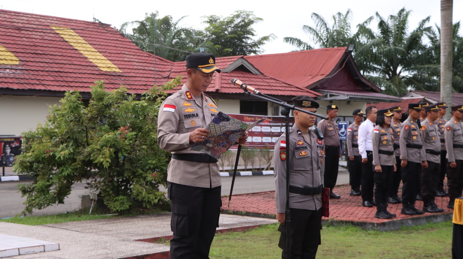 Upacara ini dipimpin langsung oleh Kapolres Bengkayang AKBP Teguh Nugroho, S.H., S.I.K., M.I.K. serta dihadiri oleh sejumlah pejabat utama Polres Bengkayang, Kapolsek jajaran, personel Polres Bengkayang, dan Ketua Bhayangkari Cabang Bengkayang serta pengurus.