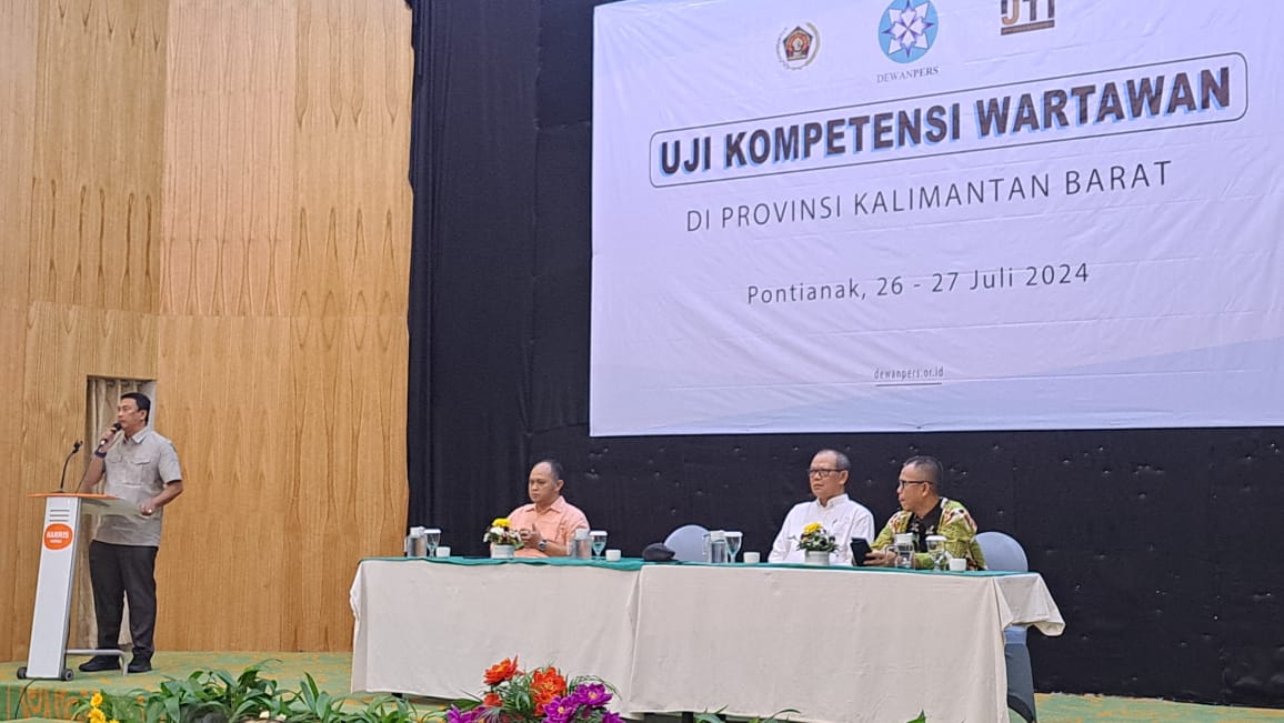 Ketua PWI Kalbar Kundori mengucapkan terimakasih kepada Dewan Pers tahun ini memfasilitasi UKW di Kalimantan Barat yang diikuti antusias wartawan.