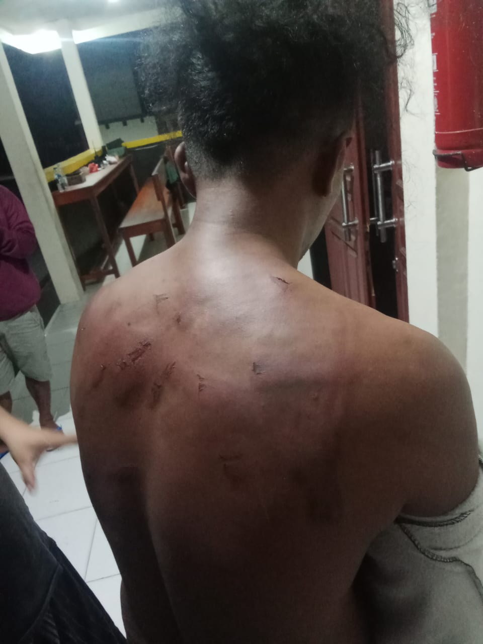 Di sini korban diinterogasi dan mengalami berbagai bentuk dugaan tindak penyiksaan. Menurut kesaksian korban, ia mengalami tindak penyiksaan antara lain dipukul, ditendang menggunakan sepatu lars, dicambuk menggunakan selang, hingga diancam menggunakan pistol. Bahkan korban menyatakan para pelaku sempat melepaskan tembakan peringatan untuk mengintimidasi korban. Atas peristiwa ini, korban mengalami luka-luka di bagian punggung, bahu, dan kepala akibat cambukan selang serta gigi patah. Lebih lanjut, korban telah melaporkan peristiwa tersebut ke Polres Halmahera Selatan.