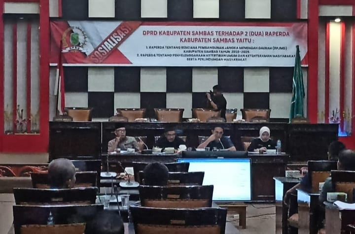 “Saat ini kita laksanakan Sosialisasi 2 (Dua) Raperda, yaitu Raperda tentang Rencana Pembangunan Jangka Menengah (RPJMD) Kabupaten Sambas Tahun 2026-2029 dan Raperda tentang Penyelenggaraan Ketertiban Umum dan Ketentraman Masyarakat serta Perlindungan Masyarakat,” ujarnya.