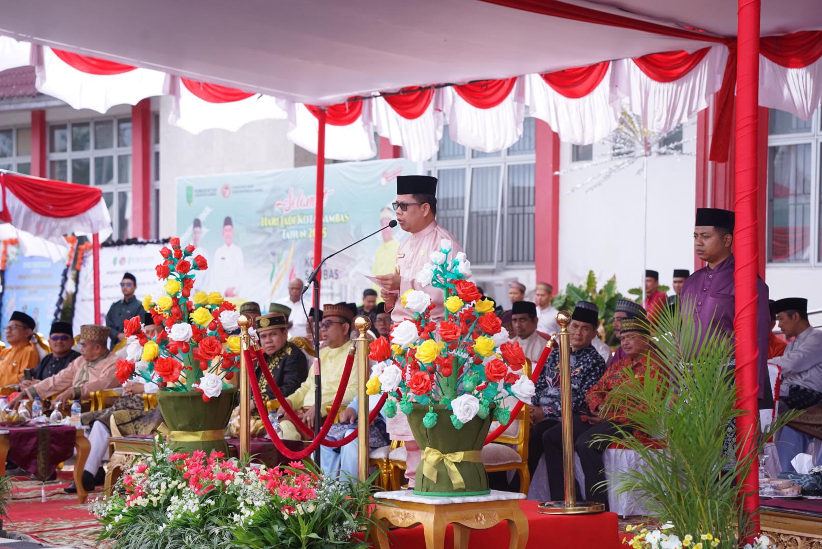 Pemerintah Kabupaten Sambas menggelar upacara perayaan Hari Jadi Kota Sambas ke-394 dan Hari Ulang Tahun Perpindahan Ibu Kota Sambas yang ke-26 yang dipusatkan di halaman Kantor Bupati Sambas, Selasa 15 Juli 2025.
