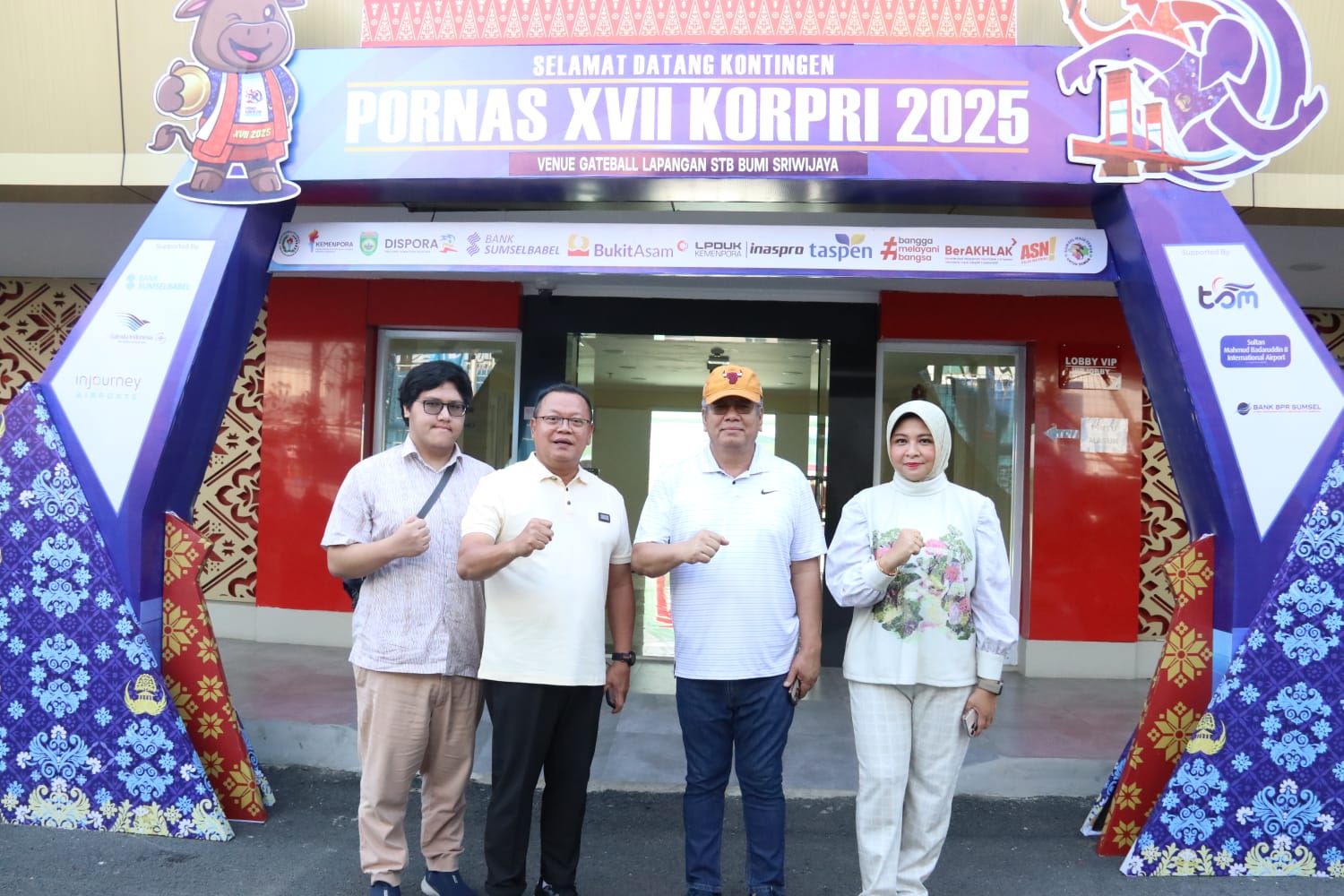 Di tepi lapangan Stadion Sriwijaya Palembang, Sekretaris Daerah Provinsi Kalimantan Barat (Sekda Kalbar), dr. Harisson, M.Kes., tampak antusias menyaksikan pertandingan dalam ajang Pekan Olahraga Nasional (Pornas) KORPRI ke-17 (XVII) Sumatera Selatan pada Cabang Olahraga Gateball dan Badminton, Minggu (5/10/2025).