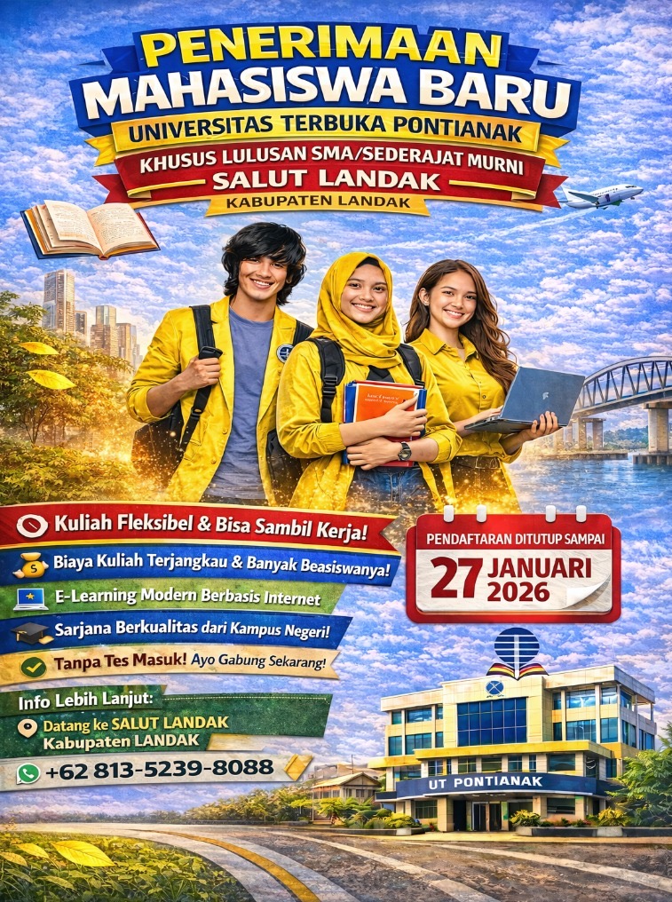 Majalahmataborneonews.com, Landak – Universitas Terbuka (UT) Pontianak melalui Sentra Layanan Universitas Terbuka (Salut) Landak masih membuka pendaftaran mahasiswa baru (Maba) bagi lulusan SMA/sederajat, termasuk pemilik ijazah Paket C. Pendaftaran ini dibuka hingga 27 Januari 2026.
