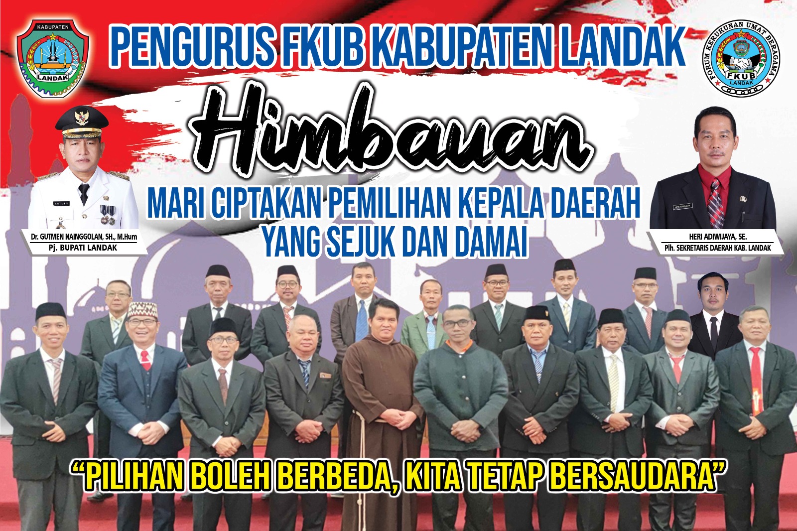 Majalahmataborneonews.com, Landak, Jajaran Pengurus Forum Kerukunan Umat Beragama (FKUB) kabupaten Landak menyampaikan himbauan kepada seluruh warga masyarakat kabupaten Landak,Untuk sama-sama menyukseskan pemilihan Kepala daerah Bupati dan Wakil Bupati kabupaten Landak periode 2024 – 2029.