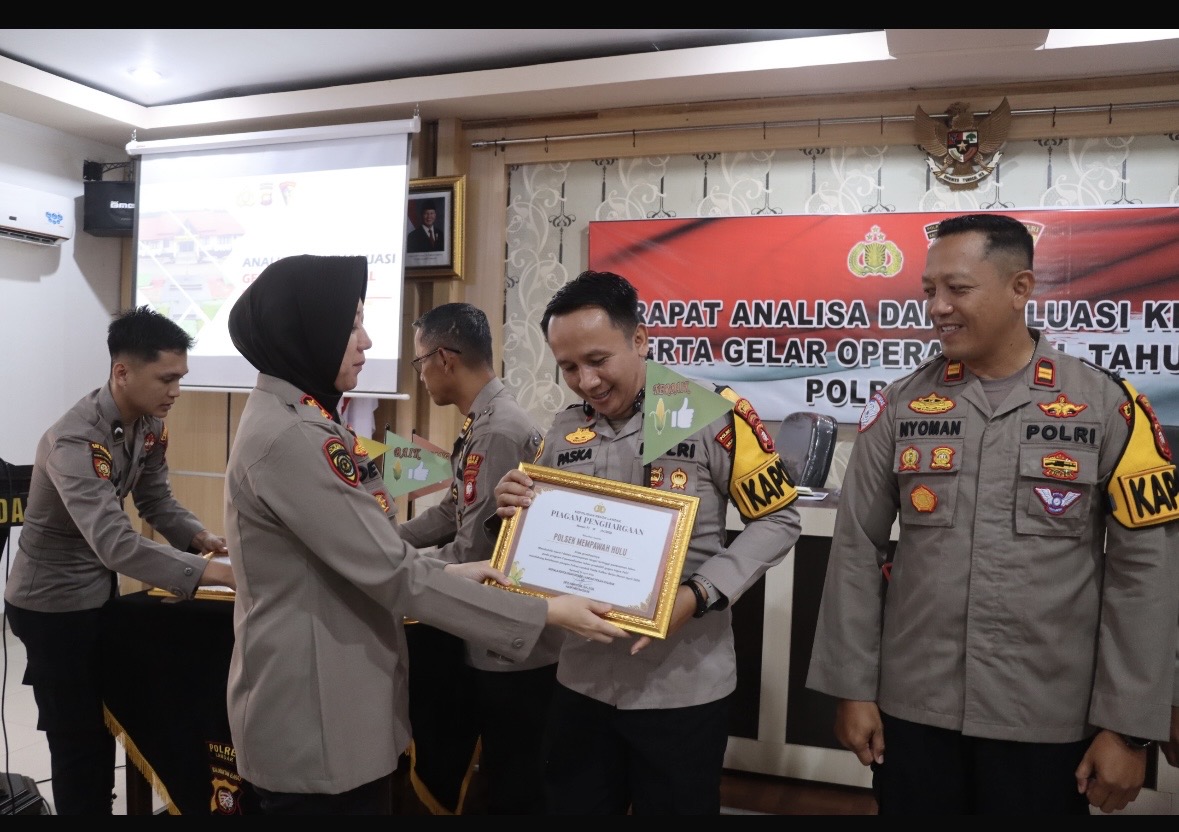 Penghargaan tersebut diberikan langsung oleh Kapolres Landak AKBP Devi Ariantari, S.H., S.I.K., pada saat pelaksanaan analisa dan evaluasi (anev) kinerja di ruang BKPM Polres Landak, Senin (13/4/26).