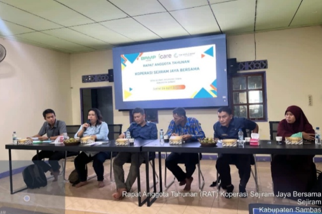 RAT dihadiri Kepala Desa Sejiram Hemdi, Ketua Tim PIU ICARE Kalimantan Barat M. Zuhran, S.ST., M.P., PIU Pendamping Koperasi Tietyk Kartinaty, S.P., M.P., serta perwakilan Dinas Koperasi, UKM, Perindustrian dan Perdagangan Kabupaten Sambas Sarkusi, S.E. Hadir pula PPL Desa Sejiram Nurlaila Sari, Gapoktan Desa Sejiram, pengurus dan anggota koperasi, serta Site Manager dan fasilitator lapangan program ICARE.