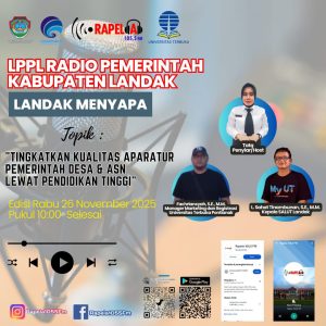 Majalahmataborneonews.com,Landak – Sentra Layanan Universitas Terbuka (SALUT) Landak dan Universitas Terbuka (UT) Pontianak melaksanakan sosialisasi Program Rekognisi Pembelajaran Lampau (RPL) bagi aparatur desa yang berminat melanjutkan pendidikan ke perguruan tinggi. Kegiatan ini digelar melalui siaran langsung di Radio Pemerintah Daerah Kabupaten Landak (RAPELA), sebagai upaya memperluas informasi dan akses pendidikan tinggi bagi masyarakat, pada Rabu (26/11/2025) dengan narasumber Fahriansyah,SE,MM selaku Manager Marketing UT Pontianak dan L.Sahat Tinambunan,SE,MM selaku Kepala Sentra Layanan UT (SALUT) Landak.