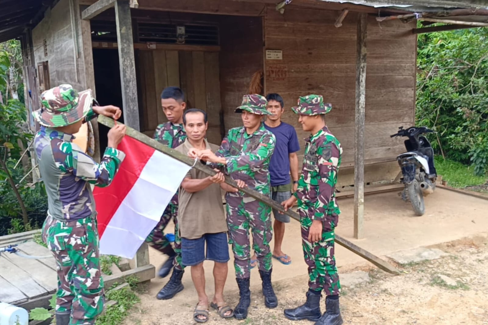 Majalahmataborneonews.com,Landak – Dalam rangka menjelang dan menyambut peringatan HUT Kemerdekaan Republik Indonesia ke-79. Satgas TMMD Ke 121 Kodim 1210/Landak membagikan Bendera Merah Putih kepada warga Desa Engkangin, Air Besar, Kabupaten Landak, Sabtu (10/8/2024 )