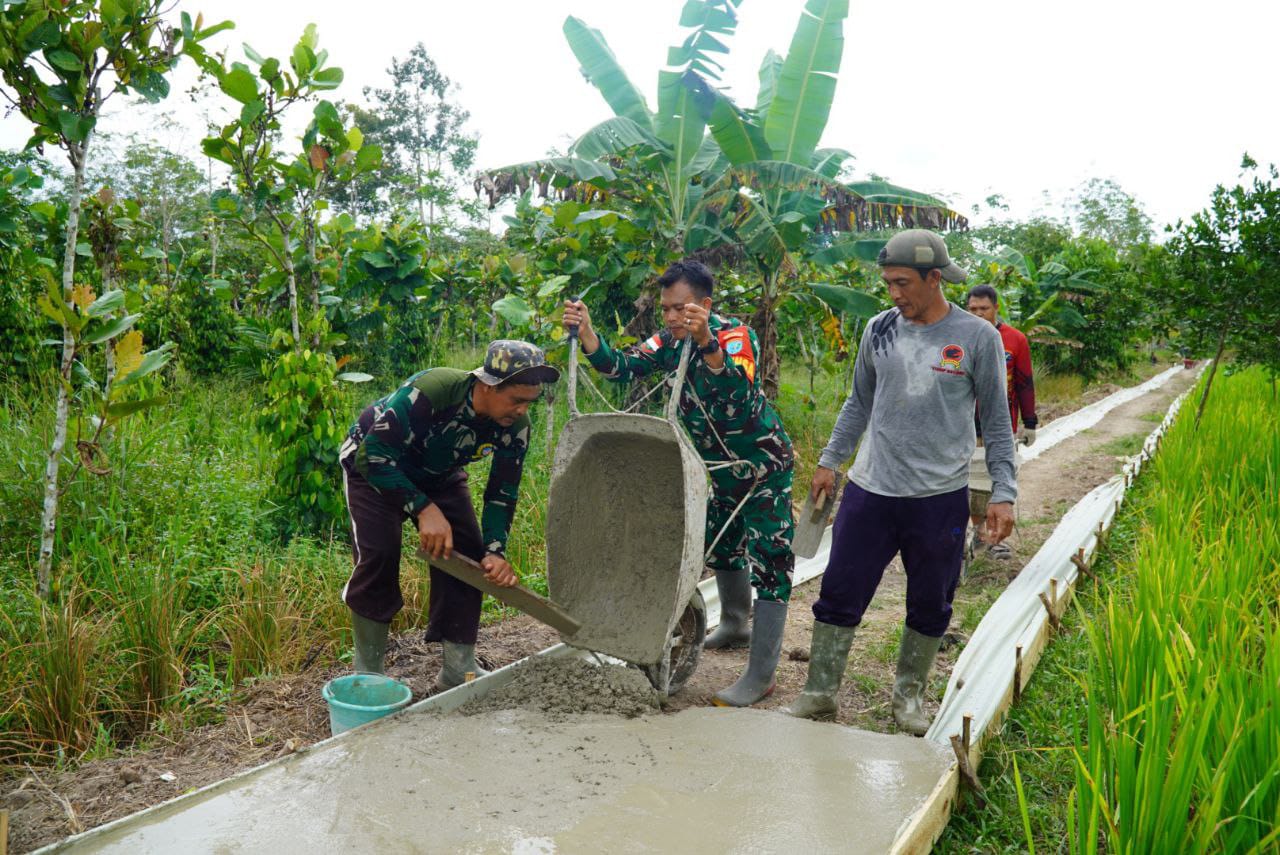 Pengecoran jalan dengan panjang 500 meter ini melibatkan personel TNI bersama warga setempat yang bergotong-royong dalam proses persiapan hingga pelaksanaan. Infrastruktur jalan yang dibangun diharapkan dapat memperlancar mobilitas masyarakat, mempermudah distribusi hasil pertanian, dan membuka akses menuju layanan publik.
