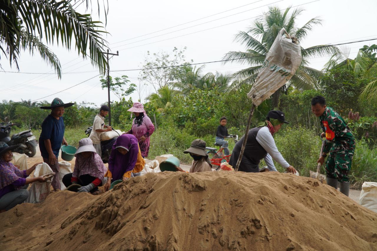 Guna memperlancar proses pembangunan infrastruktur jalan di wilayah perbatasan, Satgas TMMD Reguler Perbatasan ke-126 Kodim 1208/Sambas bersama masyarakat Desa Ratu Sepudak, Kecamatan Galing, terus menunjukkan komitmennya. Pada Jumat (10/10/25), Satgas bersama warga tampak sibuk menyiapkan material pasir yang akan digunakan untuk pengecoran rabat beton.