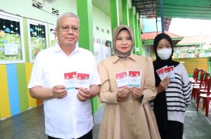 Pj. GUBERNUR HARISSON BERSAMA KELUARGA SAMPAIKAN HAK DEMOKRASINYA DI TPS 54 SUNGAI BANGKONG
