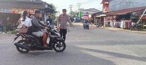 Personil Polsek Mempawah Hulu Rutin Atur Lalu Lintas Area Sekolah dan Pasar